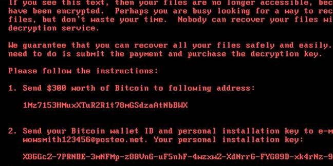 One thing is certain – if you are infected with the malware and it has taken a mixing spoon to your bytes, you're screwed. There doesn't appear to be a way to restore PCs with scrambled filesystems, and no way to pay the ransom, because the Posteo webmail address given to pay the $300 ransom has been shut down.