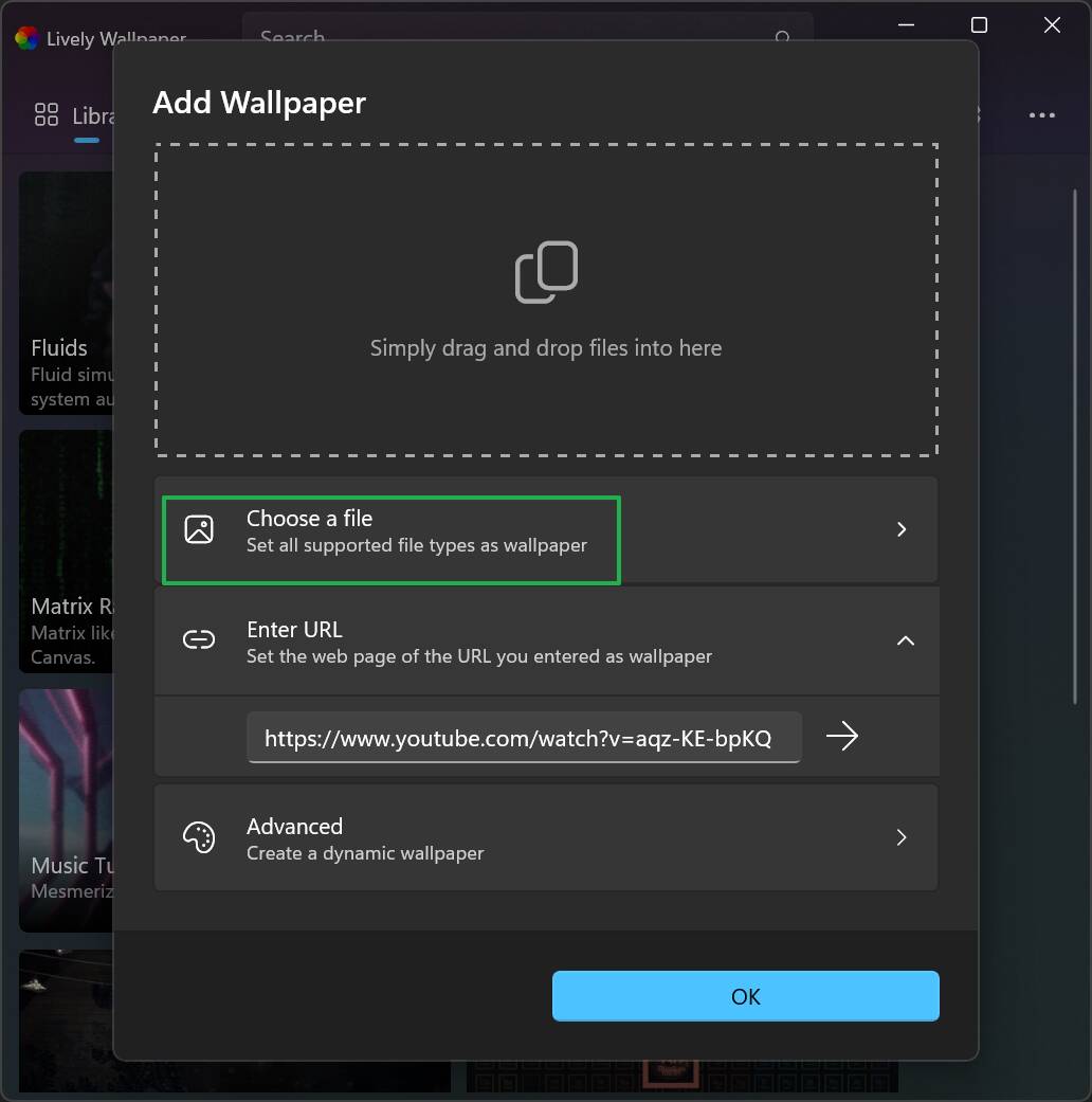 Click the plus button to add your own video wallpaper - Click to enlarge
