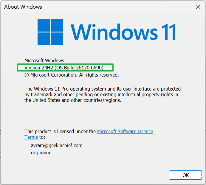 After you've joined the Insider program and your computer has run an update, which could take 10 to 30 minutes, you can check your build number by using the Winver command. Just hit Windows key + R and enter winver to make sure you are on the right build.