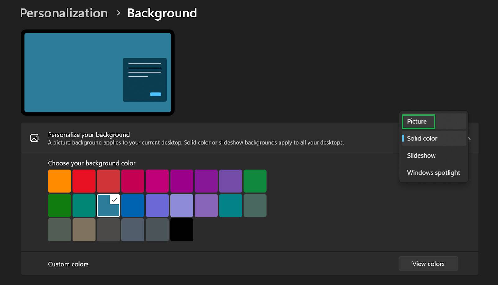 Select Picture from the Personalize Your Background menu
