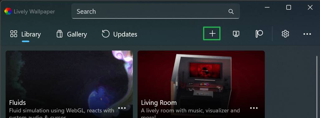 To add an animated wallpaper of your own, first click the + button.