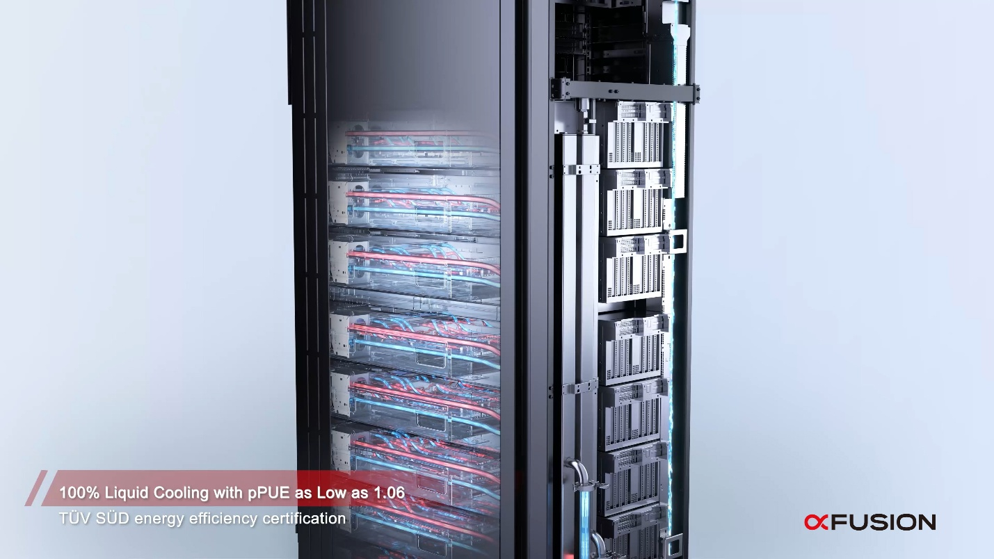 This approach allows xFusion's FusionPoD, a full liquid-cooling server cabinet, to drive cooling performance of 1500W via direct liquid cooling. Innovations include a thermal interface material that doubles thermal conductivity and a liquid coolant that delivers 10 percent faster heat transfer. These are paired with microchannel cold plates that boost performance by a quarter and a radiator that performs 50 percent better than rivals.
