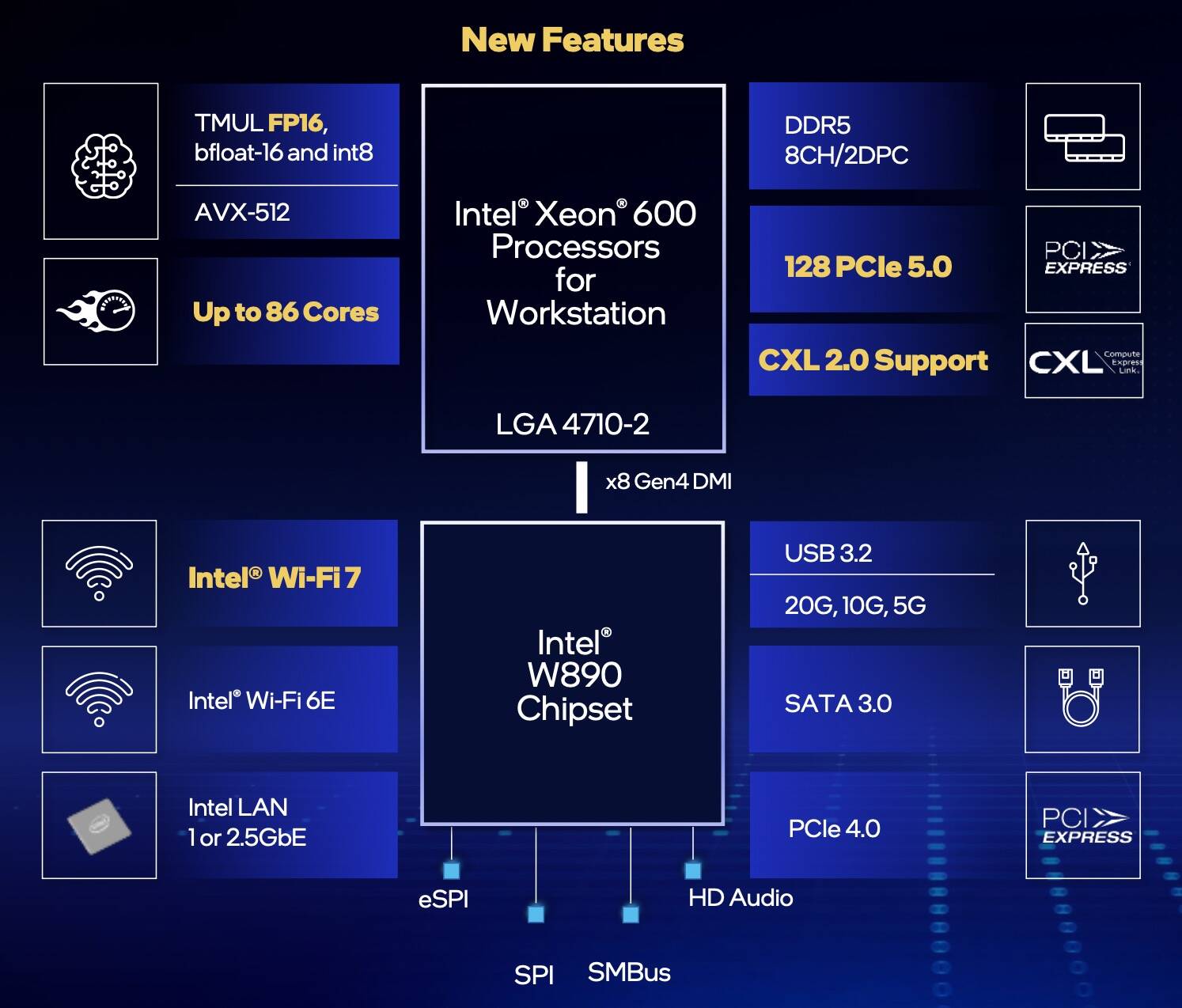 All that I/O will be broken out by a new W890 chipset, which adds support for Wi-Fi 7. But, perhaps more importantly, Intel tells us, the motherboards should sell for only marginally more than its W790 boards did at launch.