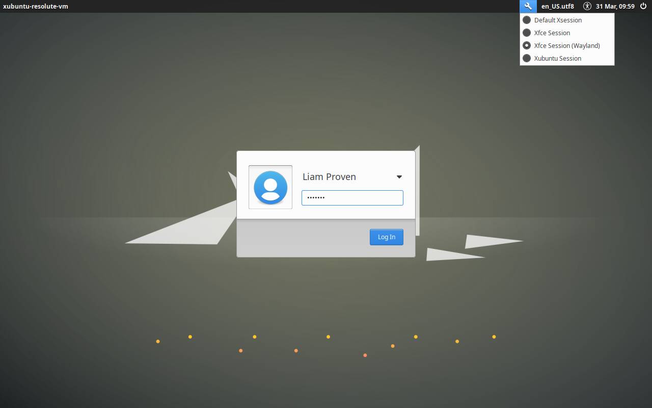 The Xubuntu Resolute login screen has a Wayland login option, but in our testing, it just returns to the login screen